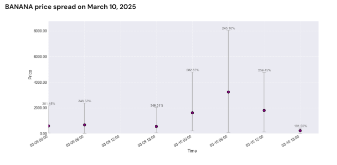 BANANA price spread on March 10, 2025