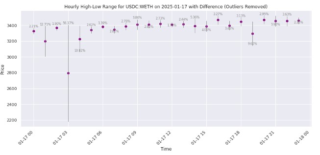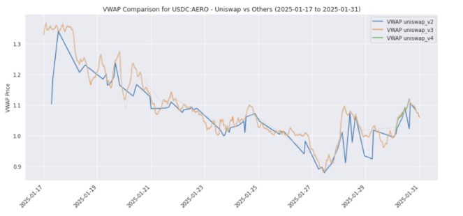 Pricing for the same token fluctuates across different DEXes: Allium found that various versions of the Uniswap protocol (v2, v3, v4) displayed price variations of 1-10% for identical USDC:AERO trading pairs.