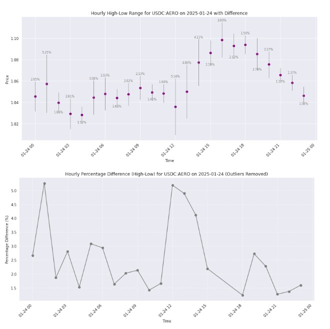 Smaller cap tokens like AERO trade at even higher spreads, often seeing a 3-5% divergence.