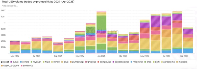 According to Allium’s data, on-chain trading volumes spiked to $1 trillion in January 2025. This period marked a memecoin trading frenzy, particularly driven by $TRUMP – a memecoin US President Donald Trump launched on the Solana blockchain platform. Volumes declined following January, but have risen steadily since March.