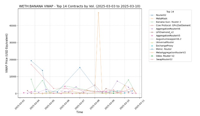 Aggregator execution quality varies by token, timeframe and market conditions: For the same token (BANANA memecoin), the VWAP price diverged significantly within the span of a week, across more than 10 different aggregators.